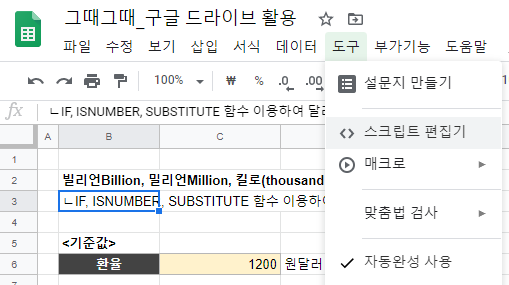[구글 스프레드 시트 활용] 달러 한화로 계산하기 (빌리언Billion, 밀리언Million, 킬로(thousand, Kilo) 포함)