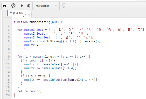 function 옆에 적혀있는 numberstring이 함수 이름입니다.