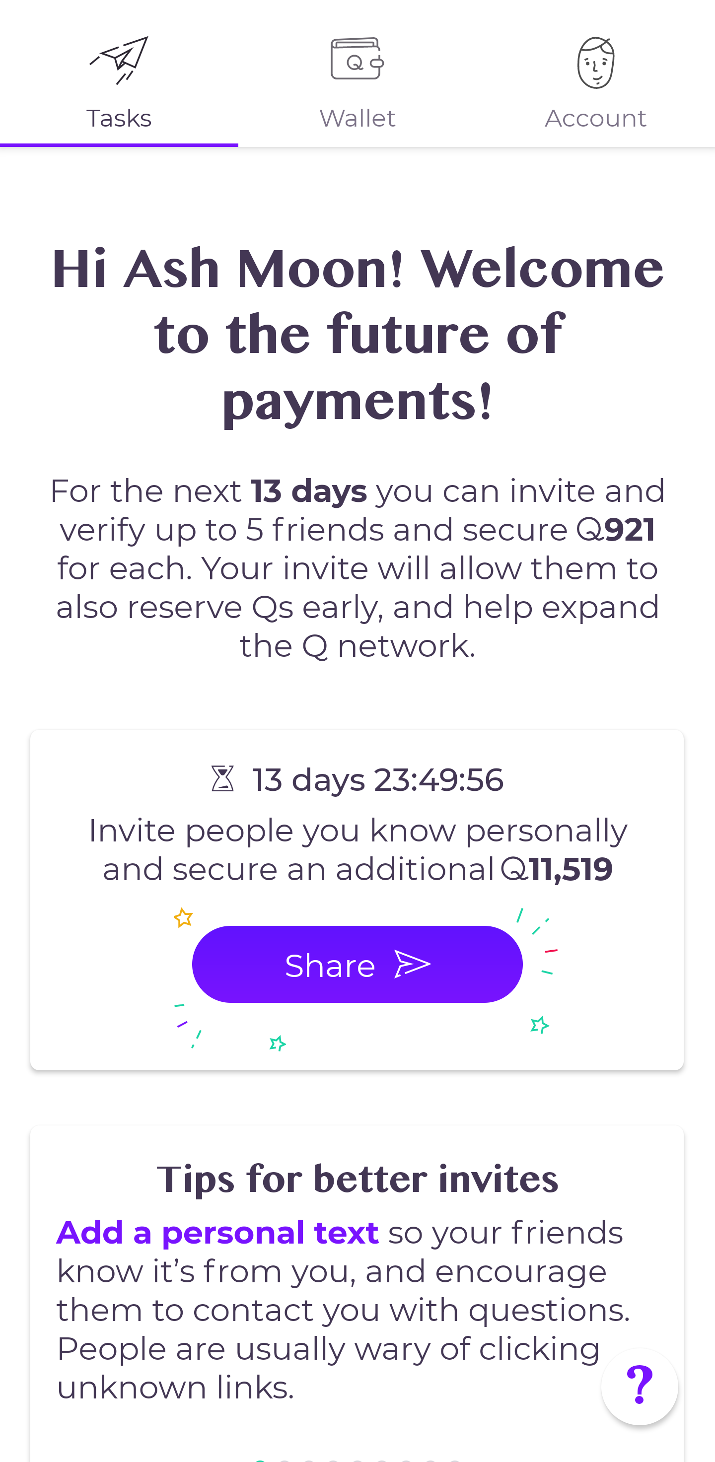 초대 링크 선택부터 가입 완료까지 약 10분이 걸렸으니 1분당 230코인을 번 셈입니다.