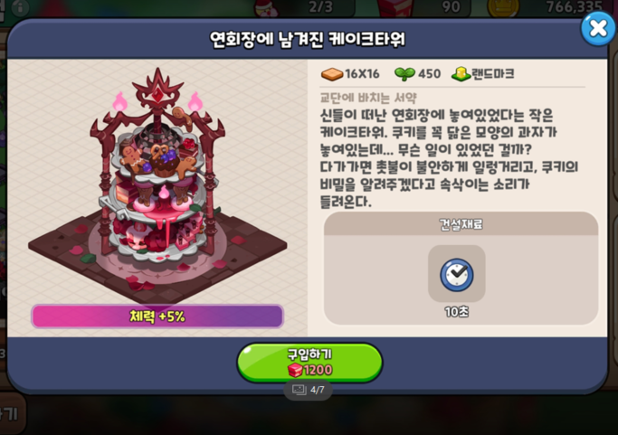 랜드마크 구매에 필요한 혼돈의 케이크 파편은 자그마치 1200개입니다.