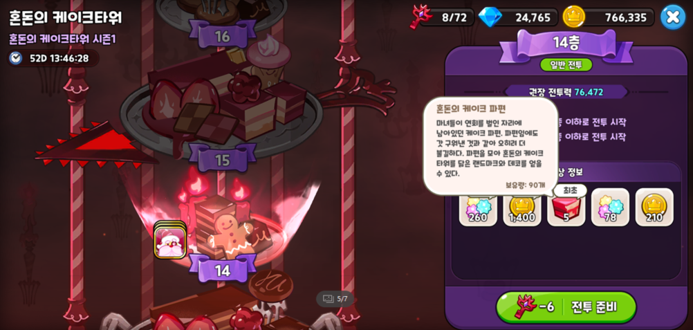 혼돈의 케이크타워를 클리어하면 혼돈의 케이크 파편 아이템을 줍니다.
