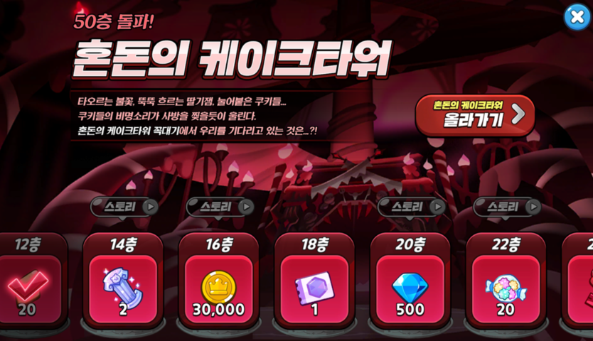 단, 케이크타워를 클리어해도 쿠키 레벨은 올라가지 않습니다.