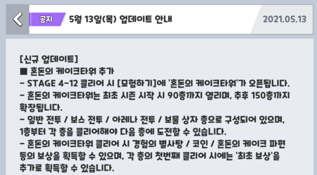 혼돈의 케이크타워는 새로운 스토리 콘텐츠입니다.