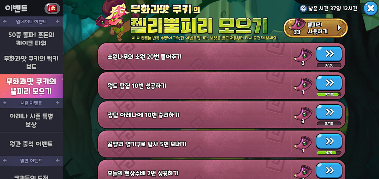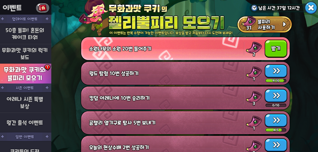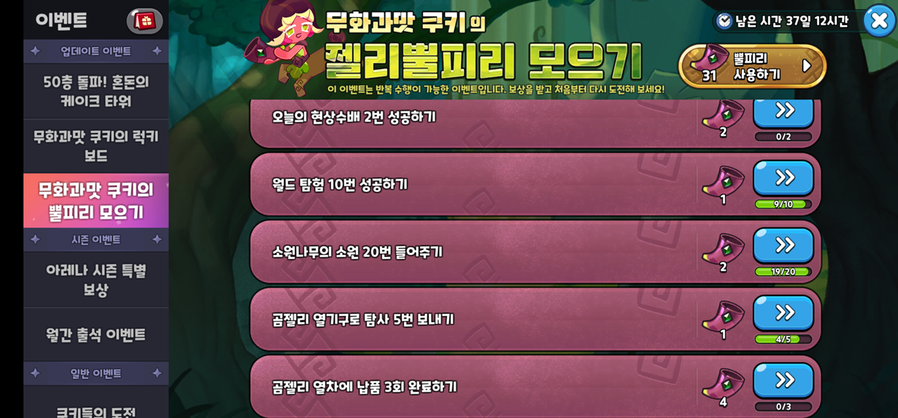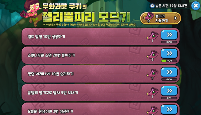 젤리 뿔피리 이벤트는 반복 수행이 가능한 이벤트로,