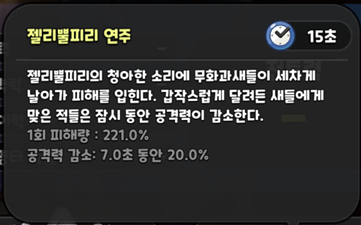 공격력을 감소시켜주는 젤리뿔피리 연주 스킬을 가지고 있습니다.