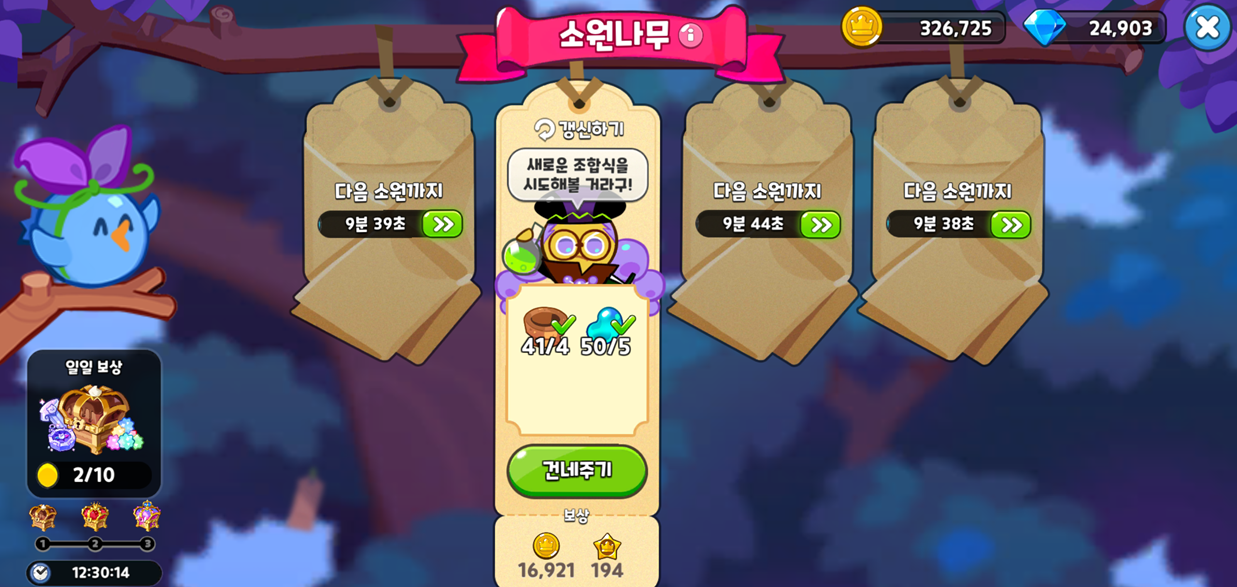 그런데, 새로 갱신된 소원나무 미션의 상태가 이상합니다.