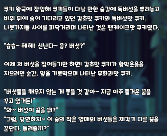 그리고 무화과맛 쿠키가 포함된 '독버섯 숲 작전?!' 인연이 추가되었습니다.