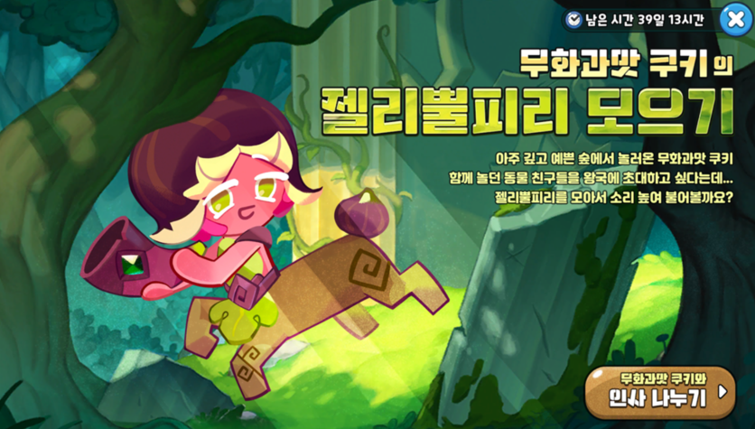 무화과맛 쿠키의 젤리뿔피리를 모아서 무화과맛 쿠키의 돌림판을 돌릴 수 있는 연계 이벤트가 새롭게 오픈되었습니다.