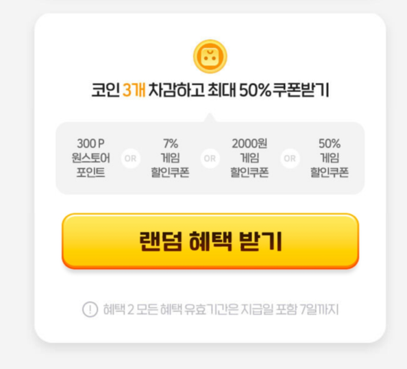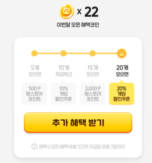 2번에서 출석체크로 모은 혜택코인은 코인 개수에 따라 추가 혜택으로 교환할 수 있습니다.