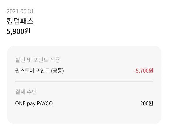 여기까지 무난히 따라오셨으면 6월 23일에 킹덤패스를 900원에 구매하실 수 있습니다.