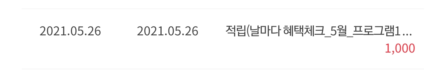 3) 원데이 혜택: 달력에 1자로 표시된 날짜에 주는 혜택입니다. 무려 1000포인트를 줍니다.