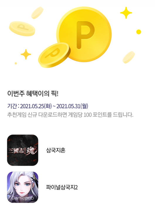 1000P(원데이) + 600P(랜덤혜택) + 3000p(추가 혜택) + 400P(게임 설치) = 5000P