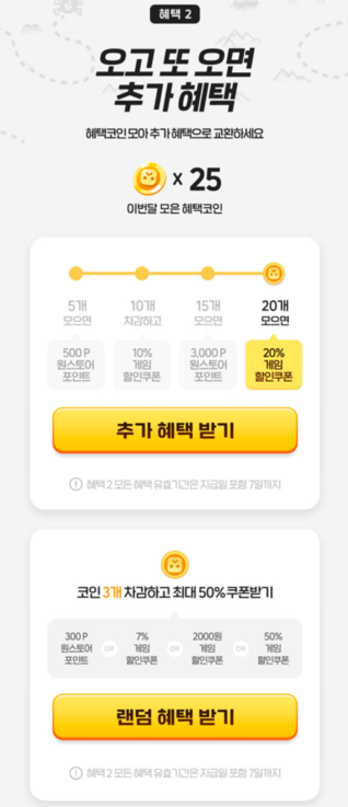 6월 23일에는 2개의 혜택코인이 남게 되고,