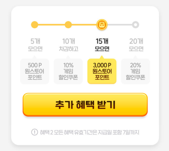 여기서 저희가 모을 것은 15개를 모으면 받을 수 있는 3000 포인트입니다.