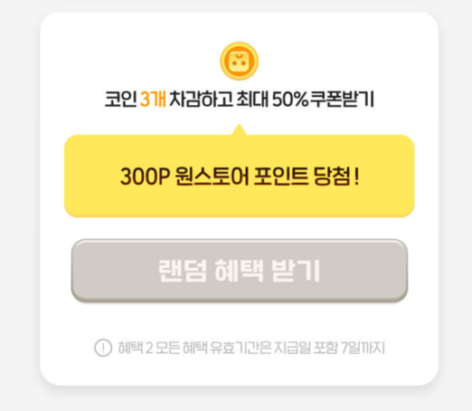 랜덤 혜택 + 혜택코인 5개짜리 추가혜택으로 800P를 받을 수 있습니다.