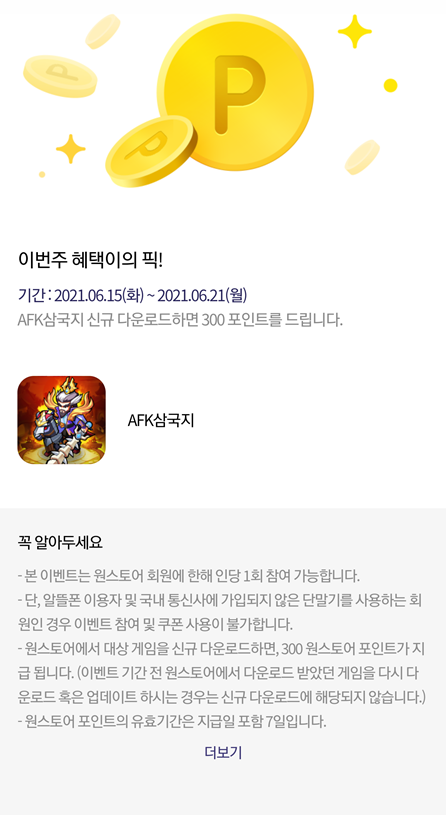 원스토어에서 오늘부터 이런 이벤트를 시작했습니다.