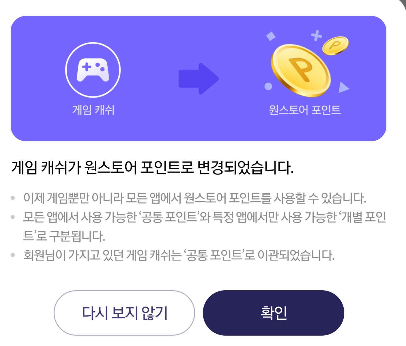 기존에 게임캐쉬/북스캐쉬로 나눠져 있던 포인트가 합쳐졌습니다.