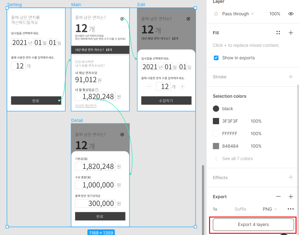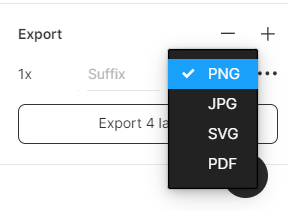 원하는 파일형식을 선택한 뒤 Export 4 layers를 선택합니다.