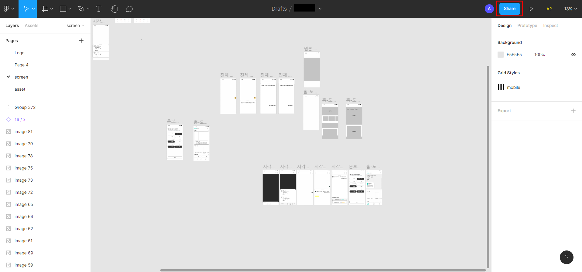 피그마는 작업파일에서 즉시 공유링크를 생성해서 공유할 수 있습니다.
