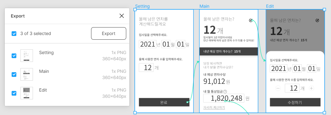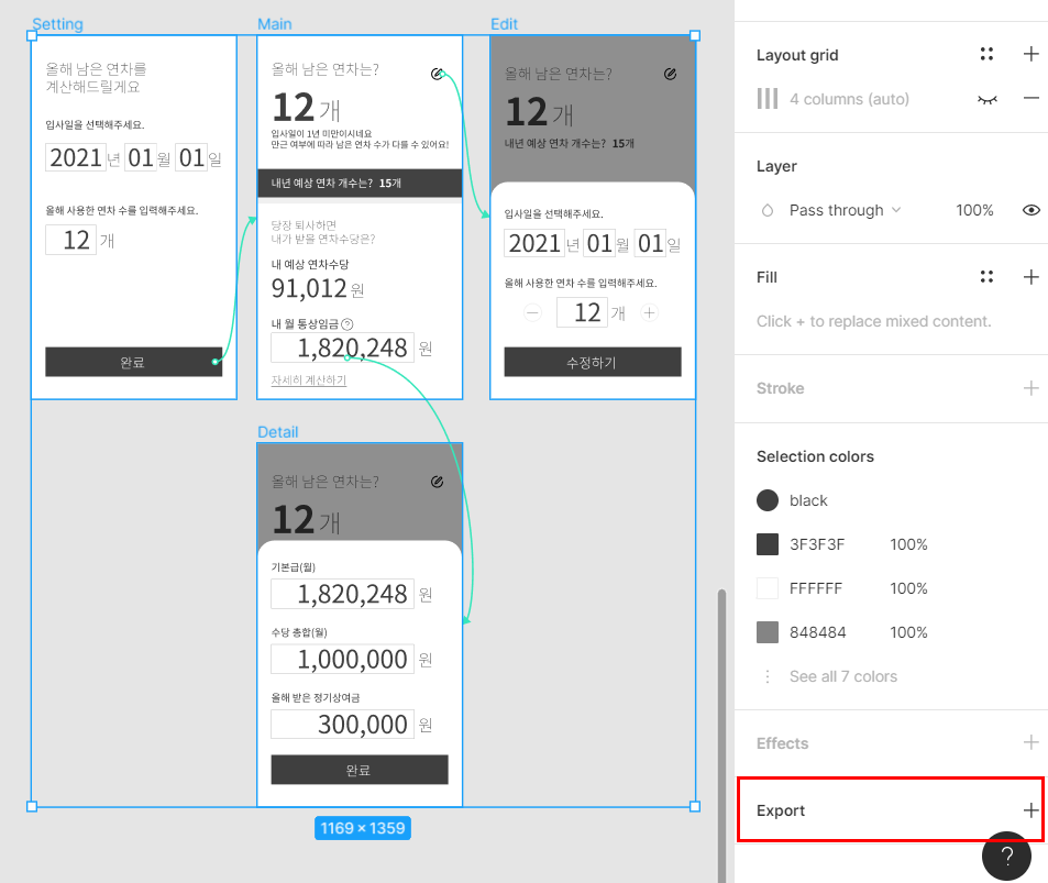 프레임화 되지 않은 컴포넌트는 내보내지지 않으니 유의해주세요.