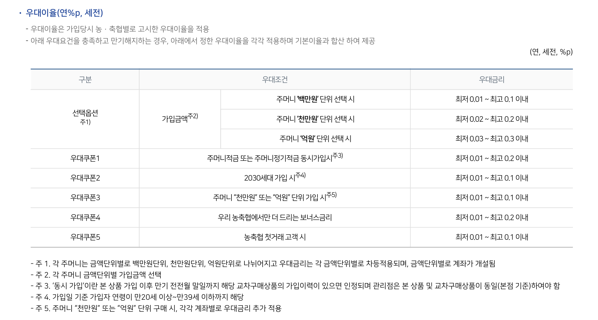 (최소 가입금액이 100만원입니다. 그냥 주는 우대 이율이네요)